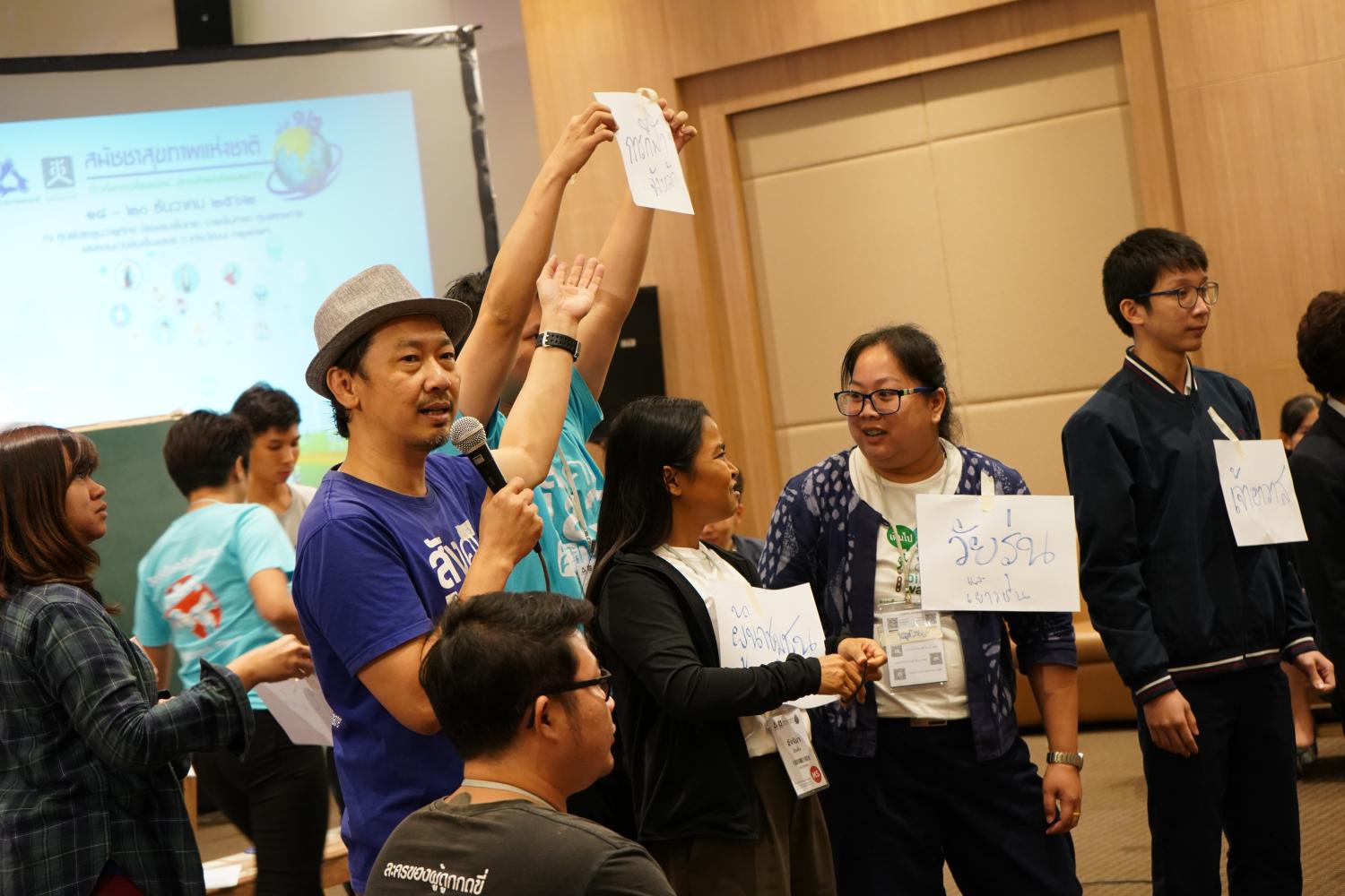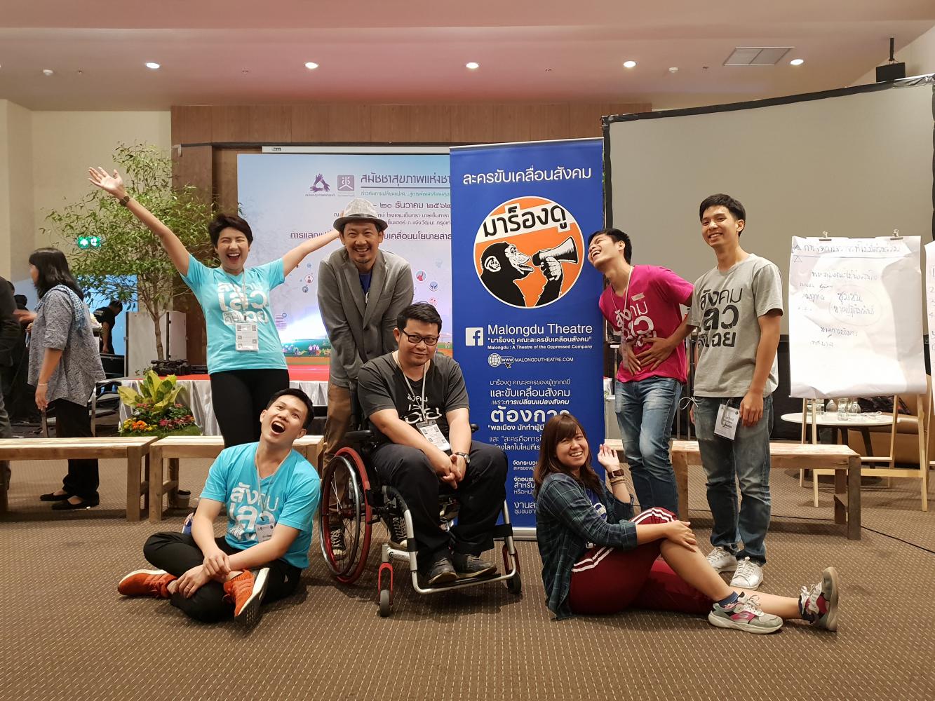 ศรชัยในเสื้อสีฟ้า ระหว่างการอบรมการแสดงบทบาทเมื่อไม่นานมานี้