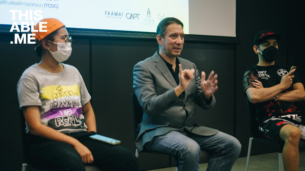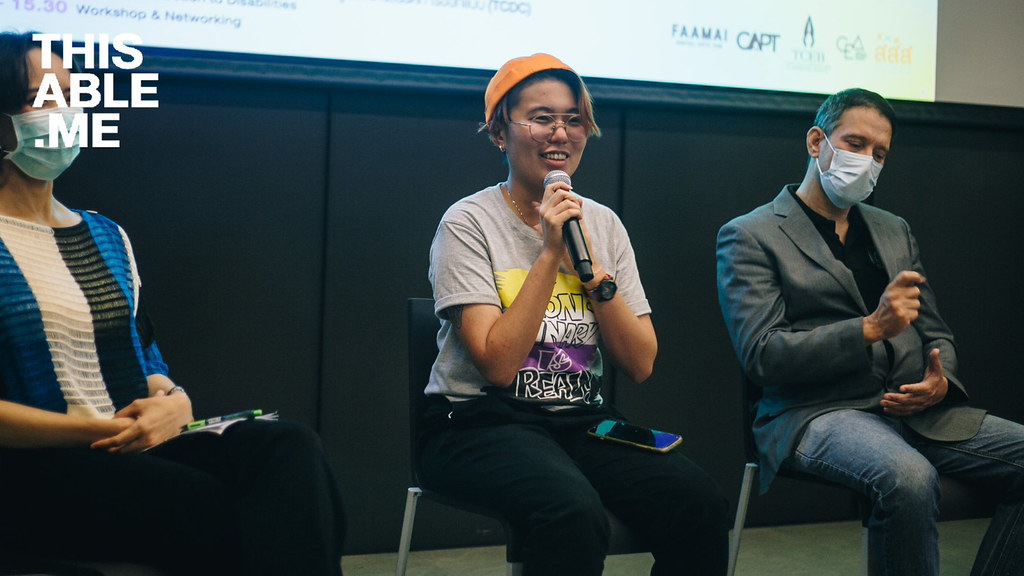 “กฎหมายประเทศไทยนั้นทันสมัย แต่ในทางปฏิบัติก็อีกเรื่องหนึ่ง กฎหมายเชื่อว่าความพิการไม่ใช่ความบกพร่องที่มาจากการหายไปของอวัยวะ แต่สังคมมีส่วนทำให้สมรรถนะของคนๆ นั้นไม่เท่าคนทั่วไป ถ้าเราคิดว่าอาคารต้องมีทางลาดแล้วไปนับว่าอาคารในกรุงเทพฯ มีทางลาดกี่แห่งก็อาจจะไม่ใช่ เพราะบางอาคารอาจไม่จำเป็นต้องมีทางลาดถ้ามีตัวเลือกอื่น ดังนั้นวิธีการจัดการจึงขึ้นอยู่กับวิธีคิดของคนในสังคม และถ้าเราเชื่อว่าทุกคนเข้าถึงได้ (accessibility) วิธีทางศิลปะและเทคโนโลยีก็จะตามมาเพื่อออกแบบสังคมที่เราอยู่ร่วมกันได้”
